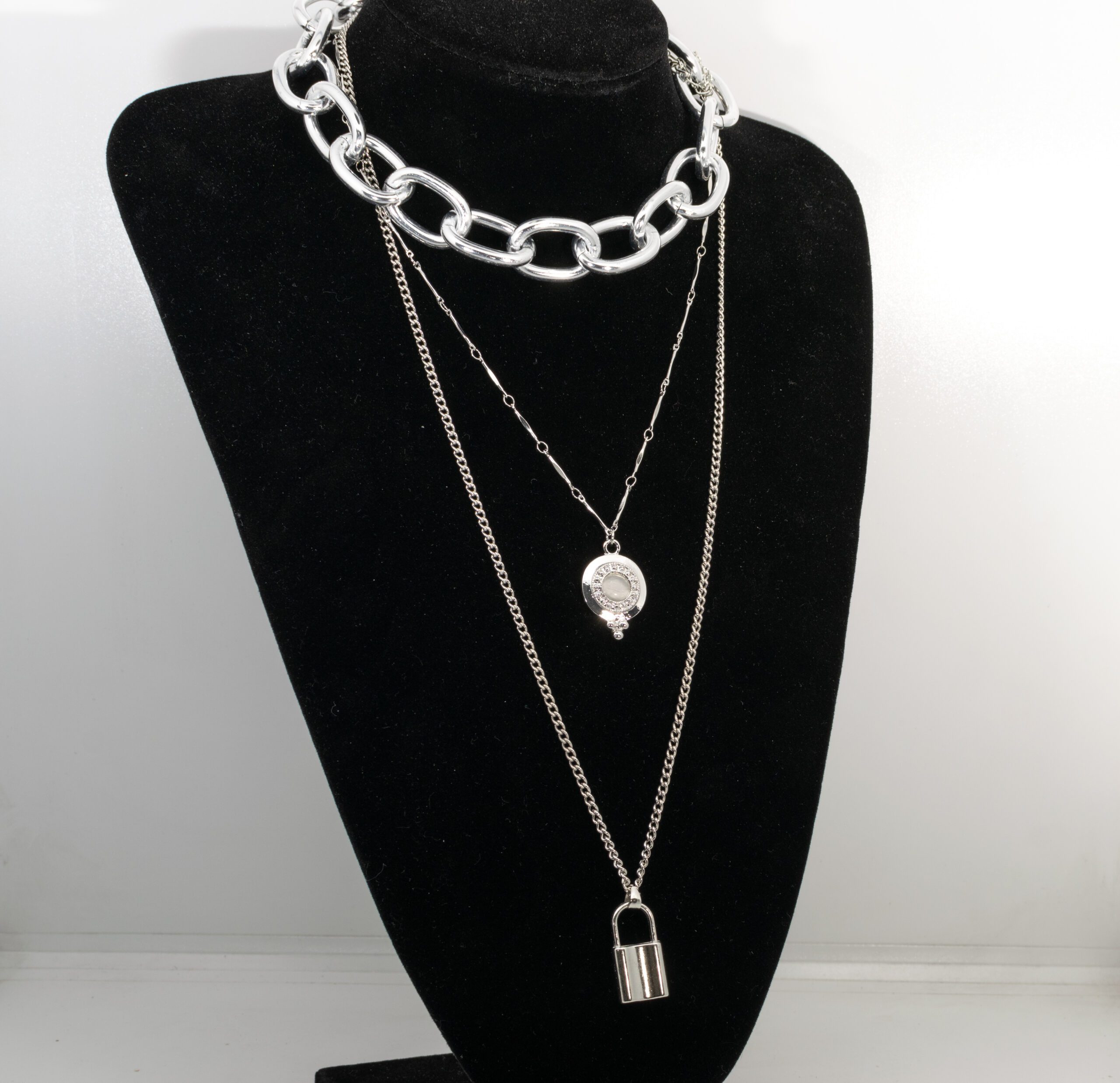 Collar de fantas?a plateado triple