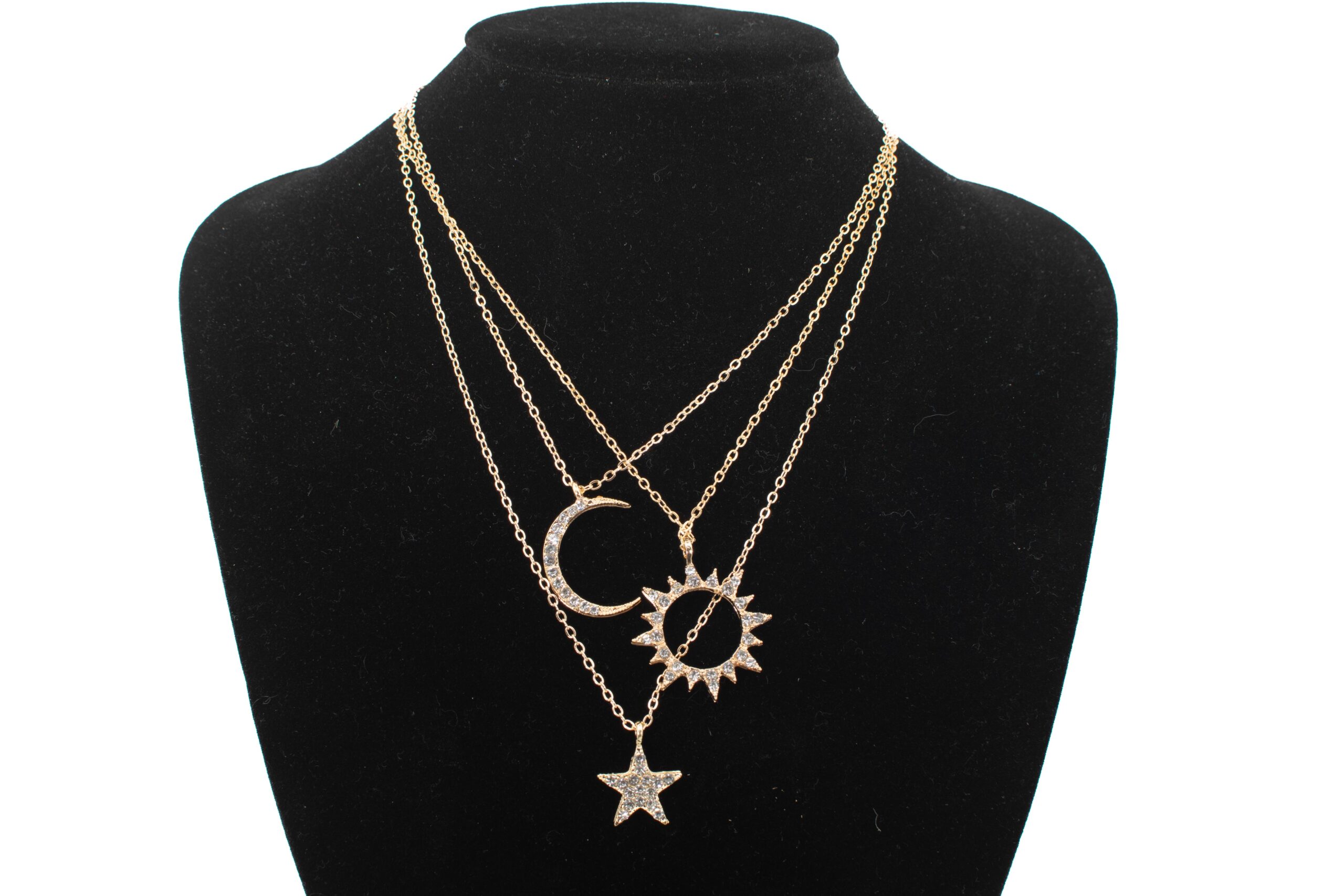 Collar de fantas?a triple con medalla de sol, estrellas y media luna