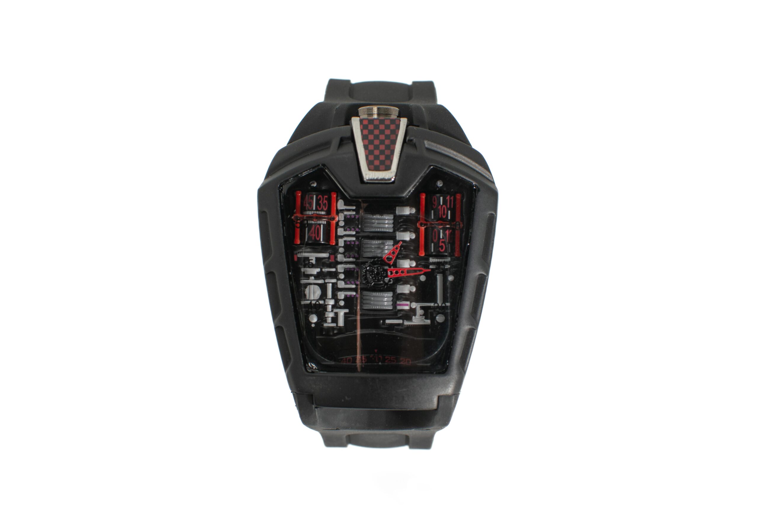 Reloj tipo Engine Bugt. con bisel negro rojo correas negras de silicona